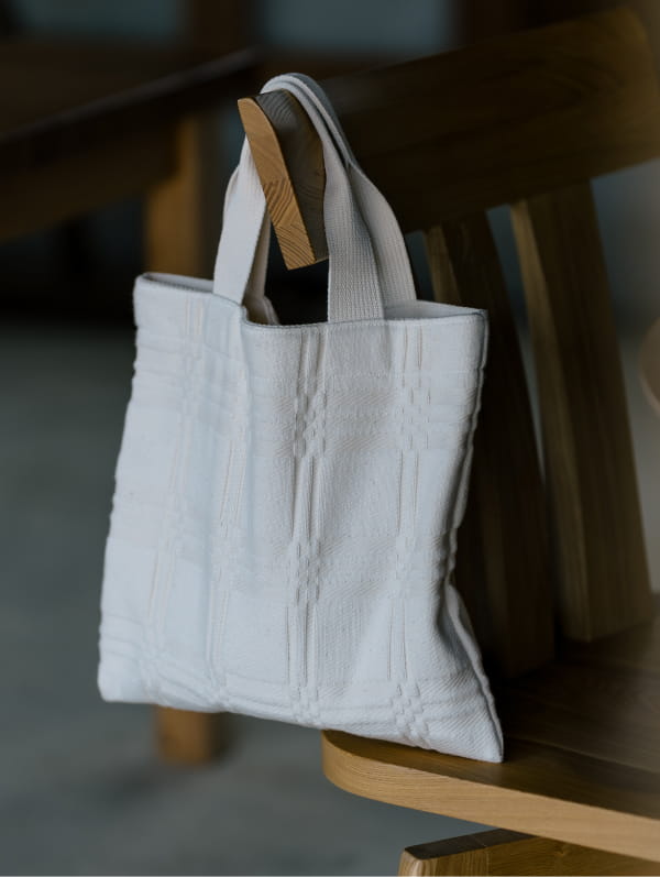 We are an apparel brand that creates bags, clothing, and scarves using original textiles and distinctive fabrics dyed and woven in Japan.